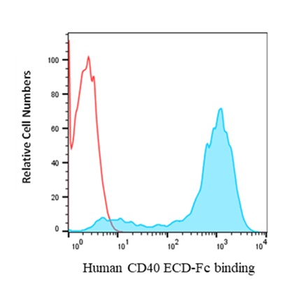B. Detection of human CD40 binding to human CD40L-EL-4 stable cells using a human CD40 ECD-Fc protein followed by staining with PE-anti-human IgG.
