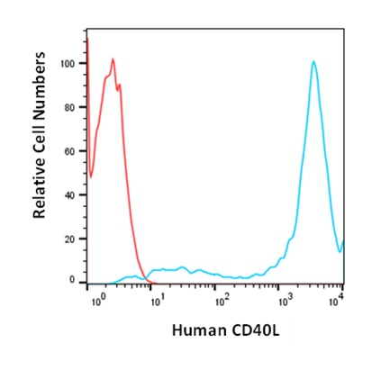A. Detection of human CD40L expression on human CD40L-EL-4 stable cells using a mouse monoclonal antibody specific for human CD40L (BioLegendCat. #310805)