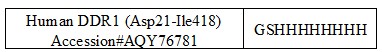 Source: Human DDR1 (Accession#AQY76781) extracellular domain (Asp21-Ile418) fused with 8xHis tag at the C-terminal, produced from HEK293 cells.