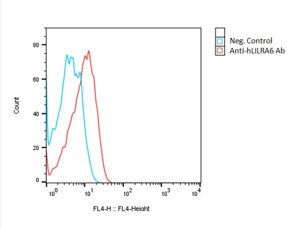 Detection of human LILRA6 expression on human LILRA6-CHO-K1 cells using a APC-anti-human LILRA6 antibody (R&D Systems #FAB8656A)