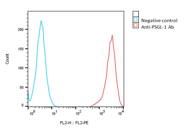 Detection of human PSGL-1 expression on human PSGL-1-CHO-K1 stable cells using a monoclonal antibody specific for human PSGL-1 (BioLegend, Cat #328805)