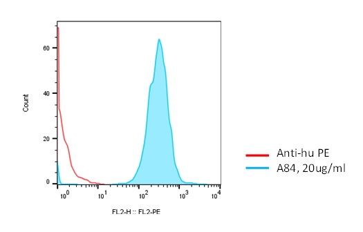 B: Binding of anti-human B7-H3 mAb A84 (Cat.#A1009) to CHO cells expressing full length human B7-H3.