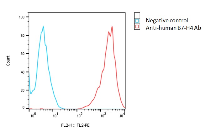 B7-H4, also known as VTCN1 (V-set domain-containing T-cell activation inhibitor 1, B7X, B7H4, and B7S1), belongs to the B7 family of immune regulatory proteins expressed on the surface of antigen-presenting cells (APCs), such as dendritic cells, macrophages, and B cells. Its expression is induced by pro-inflammatory cytokines and can be upregulated in response to immune activation. The main function of B7-H4 is to negatively regulate T-cell-mediated immune responses by inhibiting the proliferation, cytokine secretion, and cell cycle of T cells. B7-H4 expression has been observed in various tumor types, including breast, ovarian, lung, gastric, and pancreatic cancers. Its upregulation in these tumors has been associated with poor prognosis and reduced patient survival. The overexpression of B7-H4 in cancer cells is thought to contribute to immune evasion by suppressing the anti-tumor immune response.