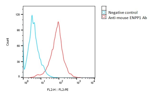 Detection of mouse ENPP1 expression on Mouse ENPP1-CHO-K1 stable cells using a PE anti-mouse ENPP1 antibody (BioLegend, #149203)