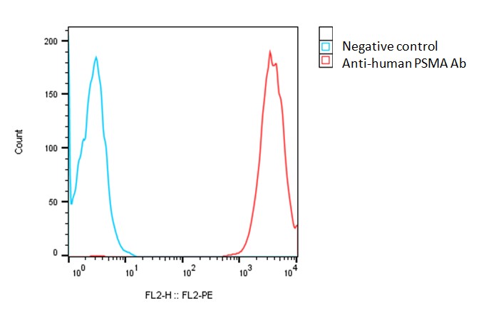Detection of human PSMA expression on human PSMA-CHO-K1 stable cells using a monoclonal antibody specific for human PSMA (BioLegend, #342503)