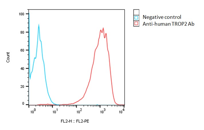 TROP2, also known as TACSTD2 (tumor-associated calcium signal transducer 2), is a transmembrane glycoprotein that plays a significant role in cell adhesion, proliferation, and signal transduction. It acts as a cell surface receptor and is involved in diverse cellular processes such as cell growth, differentiation, and migration. TROP2 is also associated with epithelial-mesenchymal transition (EMT), a process involved in embryonic development and tumor metastasis. In terms of tissue expression, TROP2 is predominantly found in epithelial tissues. It is expressed in various organs, including the lung, breast, colon, pancreas, prostate, and ovary. TROP2 expression is particularly high in epithelial cells lining the gastrointestinal tract and the ducts of different glands. TROP2 has gained significant attention in the field of cancer research due to its dysregulation in various malignancies. Elevated TROP2 expression has been observed in several cancer types and has been associated with tumor progression, invasion, and poor prognosis. As a result, TROP2 has emerged as a potential therapeutic target for anticancer interventions.
