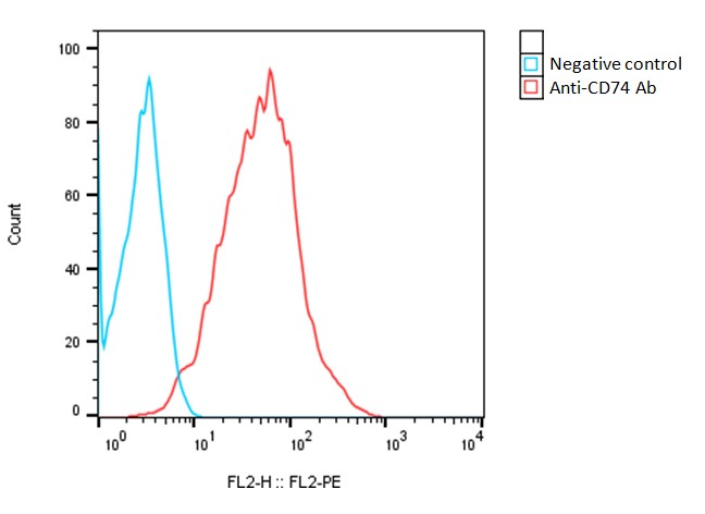 Detection of human CD74 expression on human CD74-CHO-K1 stable cells using a monoclonal antibody specific for human CD74 (BioLegend, Cat. #326807)