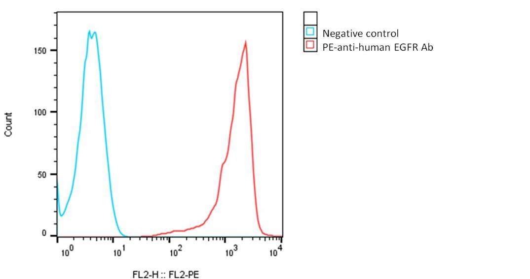 Detection of human EGFRvIII expression on human EGFRvIII-CHO-K1 stable cells using the PE-anti-human EGFR antibody (R&D Systems, Cat. #FAB9577P).
